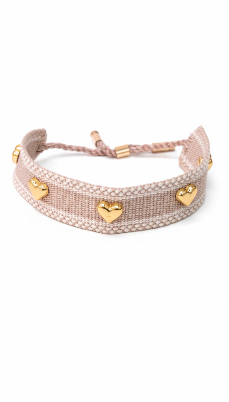 Materials: Polyester, metal beads. Gold-plated zinc.